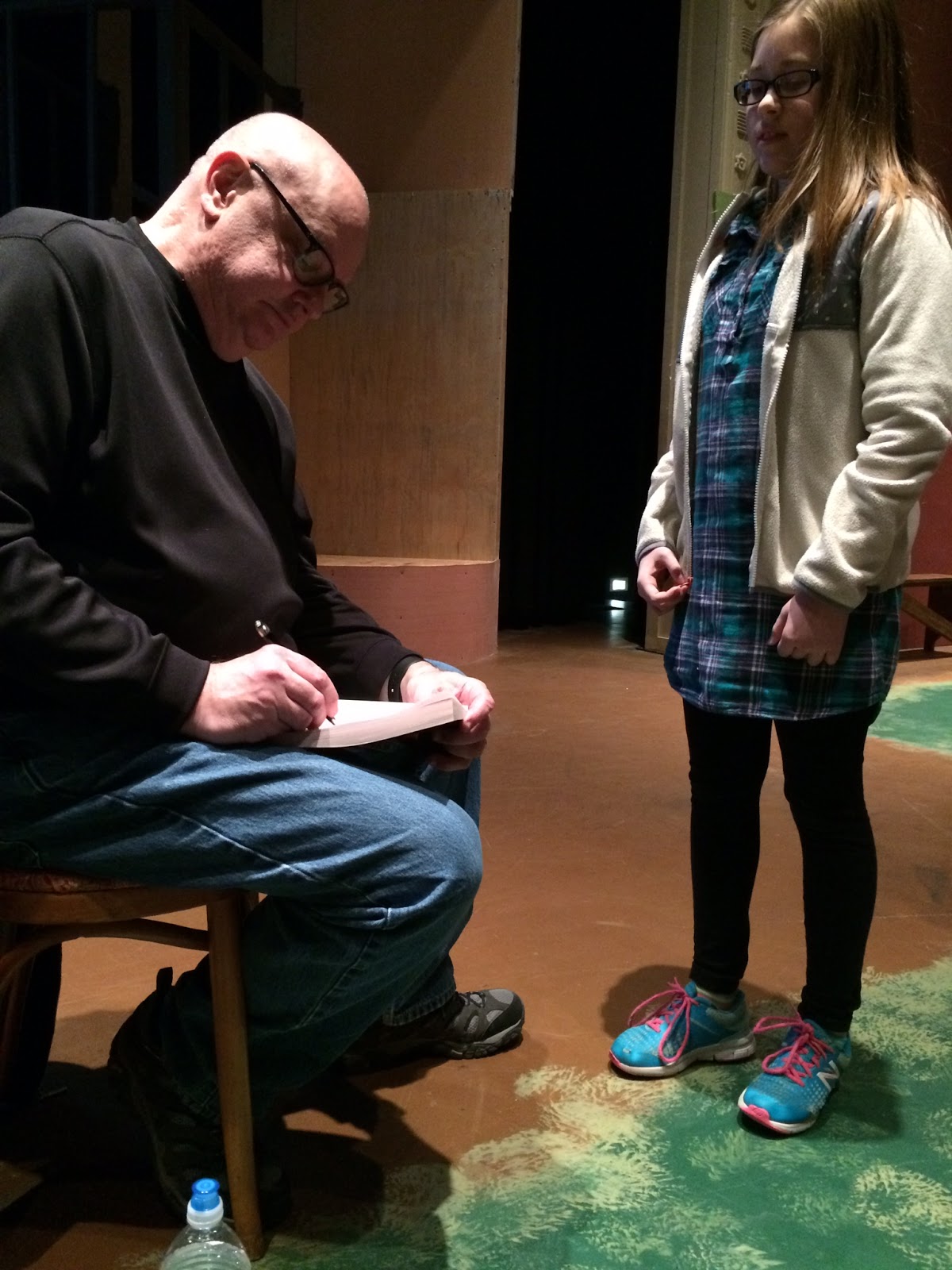 Each year LPS treats its readers to a extra special author visit. Fourteen Lewis & Clark 5th graders who had read all 12 Mark Twain nominees traveled to Heritage Middle School to hear a presentation by the one and only Roland Smith! I am so proud of our readers who set a reading goal and met it. We joined an auditorium full of other readers to hear all about Roland Smith's life and books. We had a blast and really enjoyed getting books autographed.